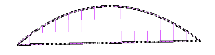 ライズスパン比 0.2 (l=100m,f=20m) 弧長 110.346849 半径72.5 中心角87.205638