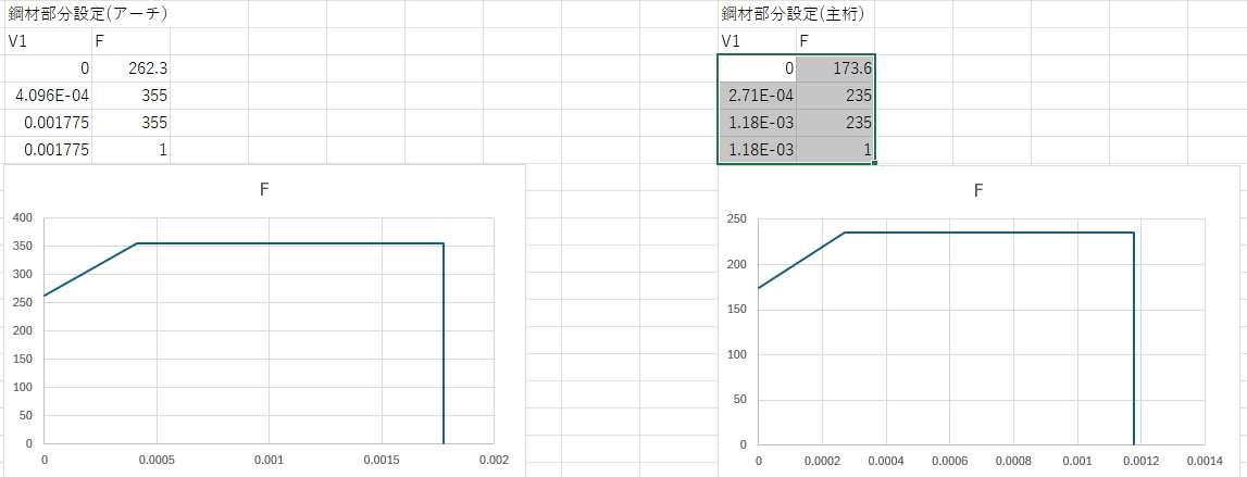 アーチと主桁にも応力ひずみのグラフでやってみる
