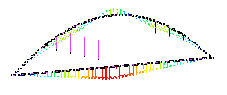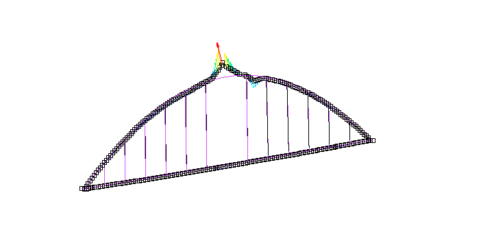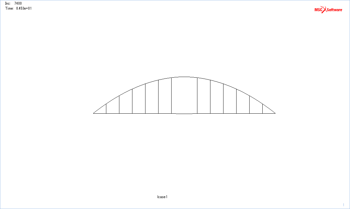 アーチの上の部分を面外座屈させるように集中荷重をかけると、ブランコみたいになった。GIFはyamamoto→marc使用方法→1220_7200kara7400
