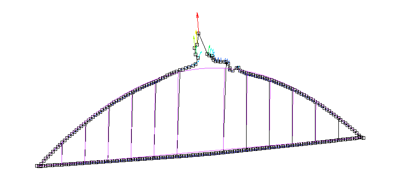 先行研究で、ケーブルを有するアーチ橋において、ケーブル腐食を考慮して連鎖崩壊を行なっていたが、アーチ橋においては、幾何学非線形を無視できない。例えば、アーチリブの座屈などが挙げられる。
