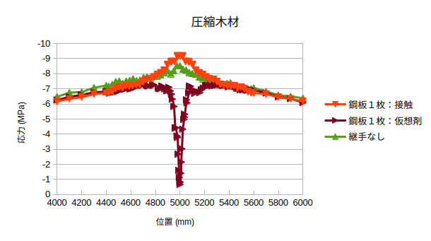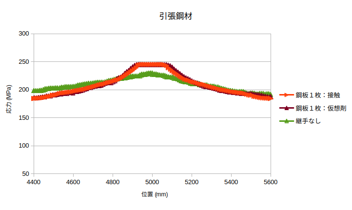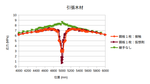 2025/8/1 ・値を取る点を仮想剤の位置からずらすと応力の変化が継ぎ手なしに近づく
