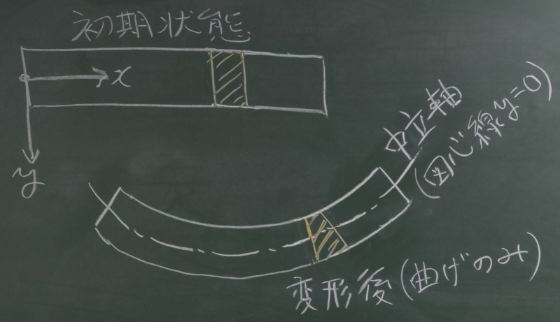 断面の図心位置($y=0$)は伸び縮みせず、