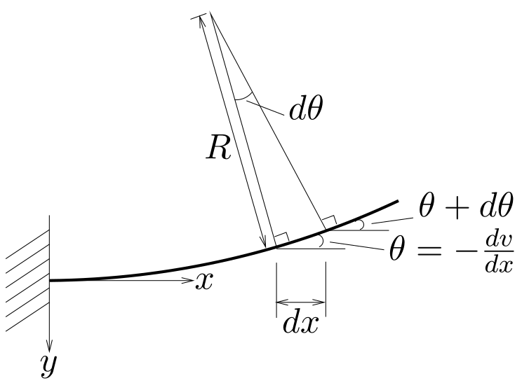 ${\displaystyle \frac{1}{R}=\frac{d\theta}{dx}}$と変形できる。