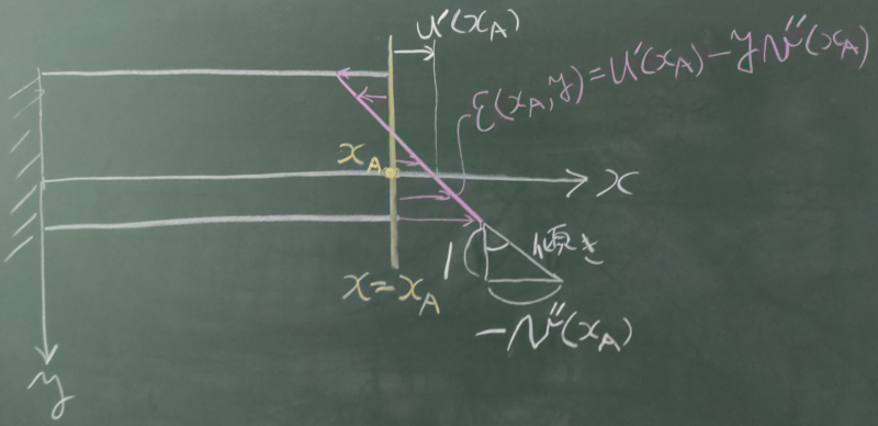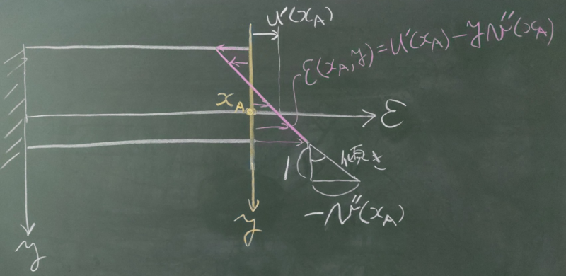 $\varepsilon^{のび}(x,y)=u'(x)$と表せるだろう。